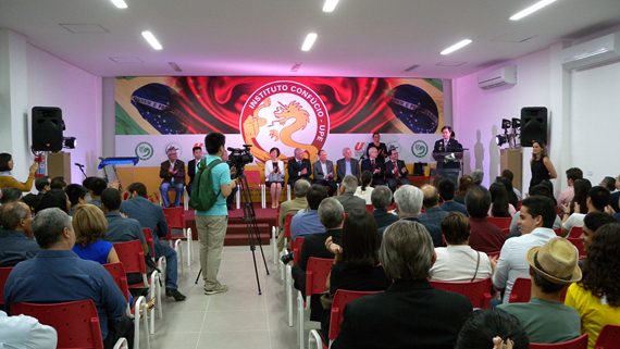 我校党委副书记梁勇率代表团一行5人出席了示范孔子学院场地启用仪式并致辞。中国驻累西腓总领事李飞月、中国驻巴西大使馆文化参赞石泽群、巴西伯南布哥州文化厅厅长玛尔赛利诺、累西腓市副市长鲁西阿诺等中外嘉宾到场祝贺。