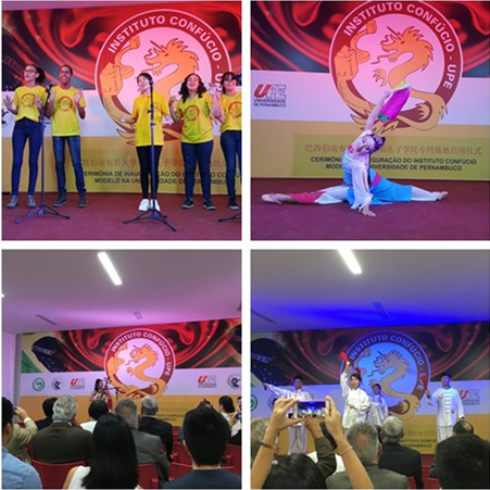 中国驻累西腓总领事李飞月、伯南布哥州文化厅厅长玛尔赛利诺等中外嘉宾分别对我校承办的示范孔子学院启用表示热烈祝贺,肯定了孔子学院在推动中巴双方语言文化交流中做出的突出贡献,表示将继续大力支持孔子学院发展,利用孔子学院这一语言和文化的优质平台,进一步推进中巴两国之间的经济文化交流与合作。