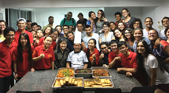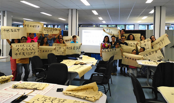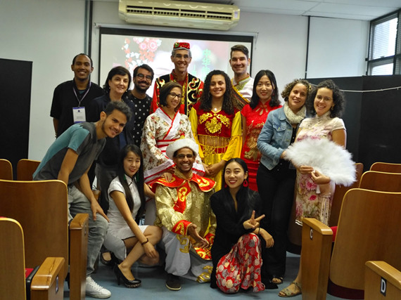 中国传统服饰讲座按照朝代顺序介绍中华传统服饰从古至今的演变,弘扬了中国传统着装文化,也展示了中华民族自成一体的着装礼仪,学生们在讲座后纷纷试穿传统及民族服饰拍照留念;中国书法讲座介绍了中国汉字字体由古至今的演变,学生们在教师指导下练习书法,体验笔墨纸砚之美;在绣球编制讲座上,教师们介绍了绣球的源起和制作方法,学生们分组制作中国红以及巴西黄、绿两种不同色彩的绣球,体验中华传统手工的魅力;中国当代教育讲座就我国当代教育体系、我国政府实施的教育政策以及当前中国高等教育所面临的挑战做了阐述和分析;中国传统美食讲座介绍了中国人“民以食为天”的饮食哲学以及中国美食的不同风味及菜系,教师们在现场教授大家制作春卷,随后,大家还一起品尝了自己包的春卷和由中国驻累西腓总领事馆厨师烹饪的精美菜肴。