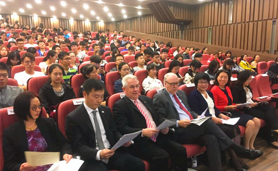 维多利亚大学代表团来访期间还参加了2017级中澳合作本科项目新生开学典礼。
